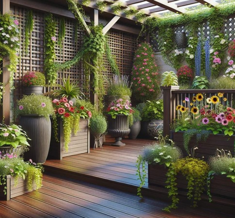 Incorporating vertical gardening is a smart way to maximize space and add greenery to your deck garden. Vertical gardens use walls, fences, or specially designed structures to grow plants upward instead of outward. This technique is perfect for small decks or when you want to create a lush, green backdrop. Popular vertical gardening options include wall-mounted planters, trellises, and hanging pots. These can be used to grow climbing plants, herbs, or small flowers, adding layers and depth to your outdoor space.