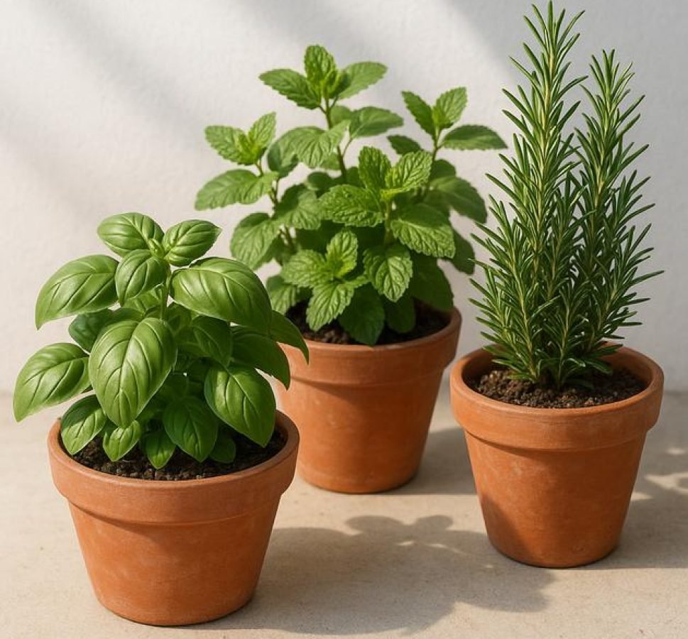 - Mint — vigorous grower; plant in a separate pot to control spread.