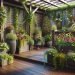 Select plants that thrive in humid conditions and require low maintenance, such as ferns, hostas, and ornamental grasses. Climbing vines like jasmine or clematis can add vertical greenery and privacy when grown on trellises.